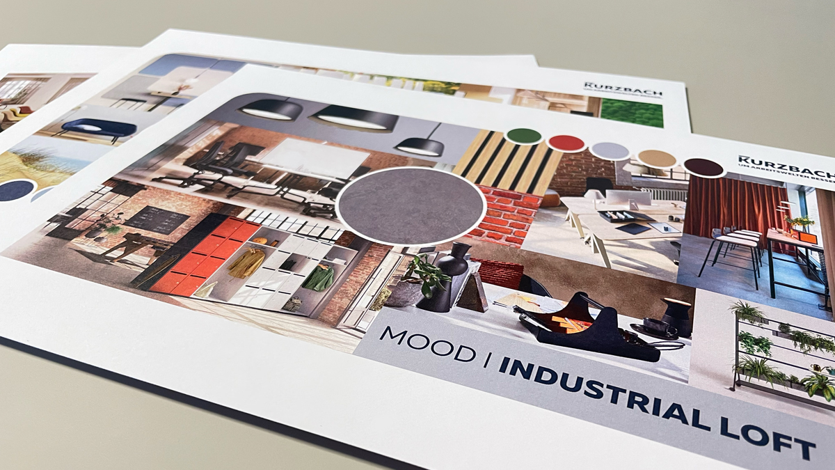 Unsere Moodboards unterstützen Euch dabei, Materialien und Farben harmonisch zu kombinieren und ein Gesamtbild zu schaffen, das Eure Arbeitswelt sowohl optisch als auch funktional prägt.